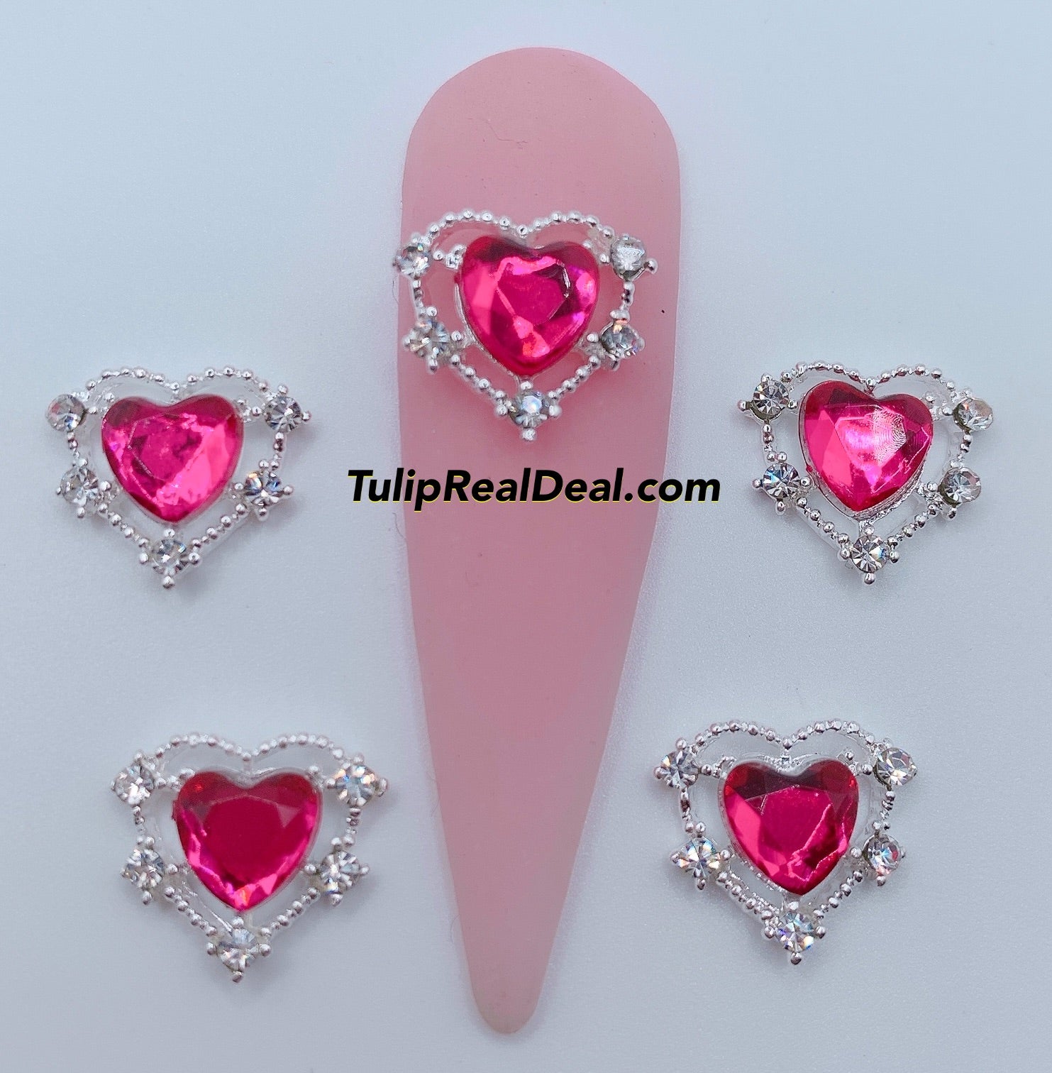 Bling Hot Pink Heart nail charms 5pcs